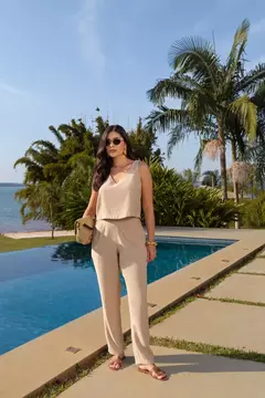 Descubra o Conjunto Alfaiataria Det Trança Blusa e Calça em bege claro, a escolha perfeita para quem aprecia elegância e conforto em uma composição moderna.